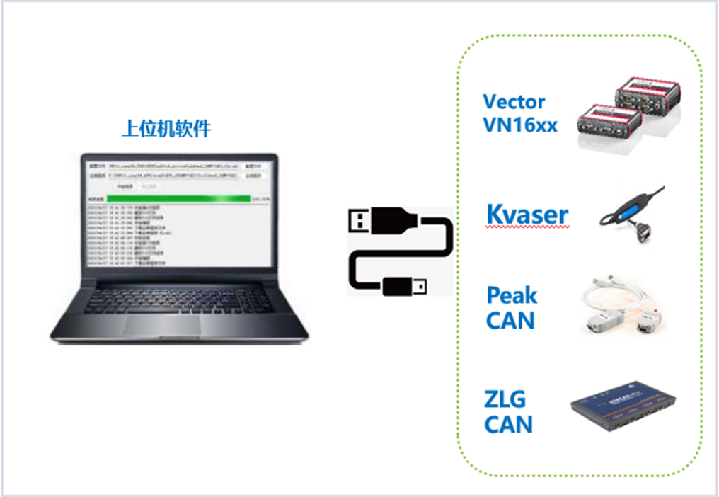 Bootloader上位机刷写软件通过USB转CAN/LIN/ETH接口,配合ECU控制器服务端BootLoader下位机程序,通过总线通信,完成应用程序和用户数据的在线……